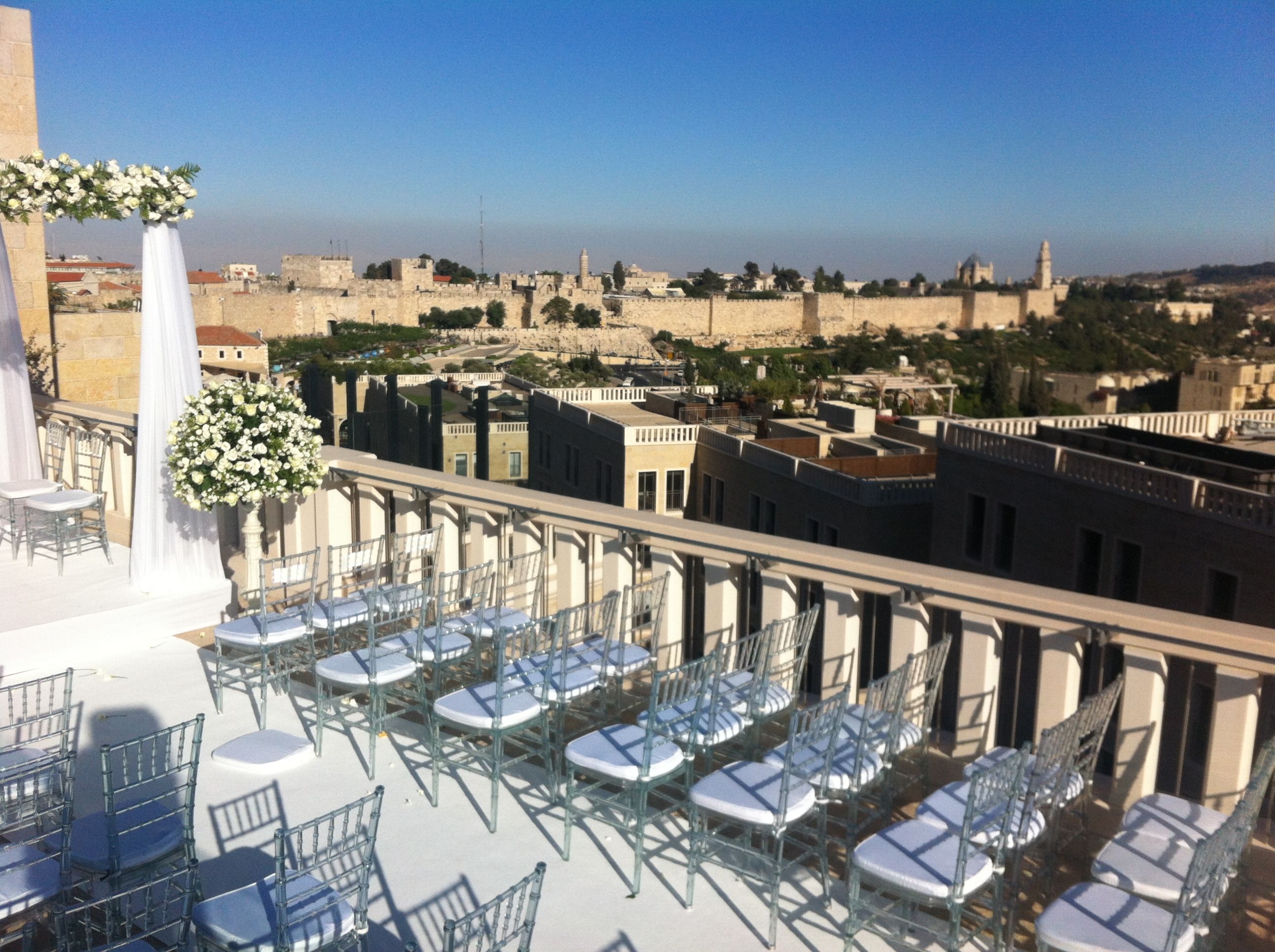 במרכז הגג גן יפהפה, שממנו ניתן לצפות בנופיה עוצרי הנשימה של העיר העתיקה, ולחוש באווירה המיוחדת והמרגשת של חתונה בירושלים. לאחר הטקס, הארוחה והריקודים, ניתן להמשיך את חגיגות החתונה בבר האלגנטי של מלון ממילא, המירור בר - בו מנגנים די ג'ייז מובילים עד 2 לפנות בוקר.
